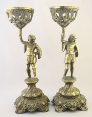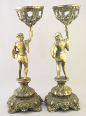 Pair of Cast Brass Kerosene Lamp Bases, 16 3/4"H.