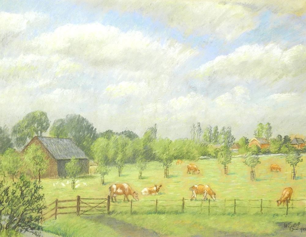 LOT 68 Pastel on Paper signed W. (William) Gestel, 18 1/8" x 23 1/8", "Cows in the Meadows". Estimate: $100 - $200 Sold For: $90 Auction Date: Tuesday, June 11 2024 at 4:00 PM
