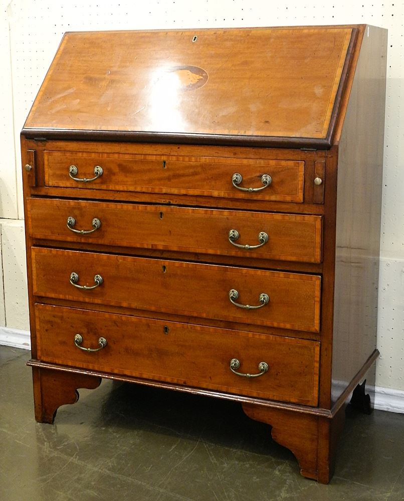 LOT 97 Banded Mahogany Fall Front Bureau Inlaid with Shell Motif. Estimate: $100 - $200 Sold For: $160 Auction Date: Tuesday, June 11 2024 at 4:00 PM