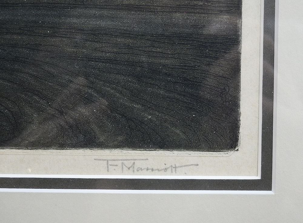 Etching with Aquatint signed F (Frederick) Marriott, 11 3/8" x 13 1/4", "Old Gateway".