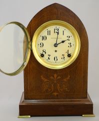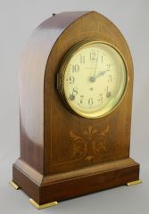 Henry Birks & Sons Inlaid Mahogany Marble Clock, 13 1/4"H.