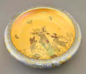 1930's Crown Devon Fieldings Lustrine Ware Fairyland Bowl, 12"D.