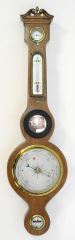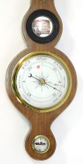 20th C. Banded Mahogany & Brass Wall Barometer, 24"H.