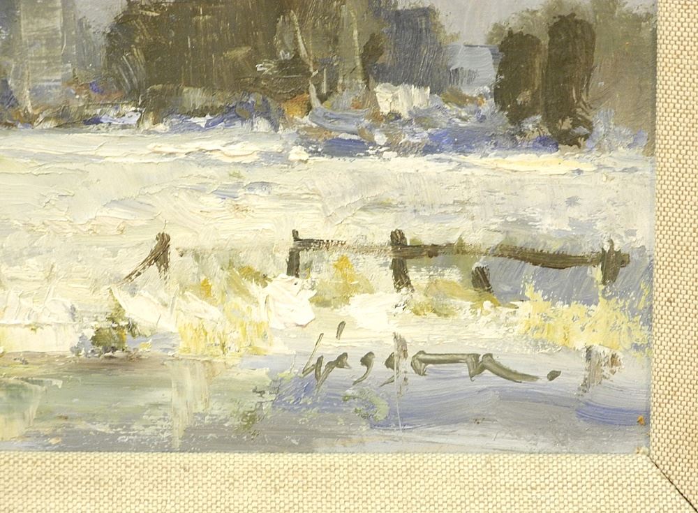 Oil on Board signed Wesson, 10" x 14", "Winter Scene".