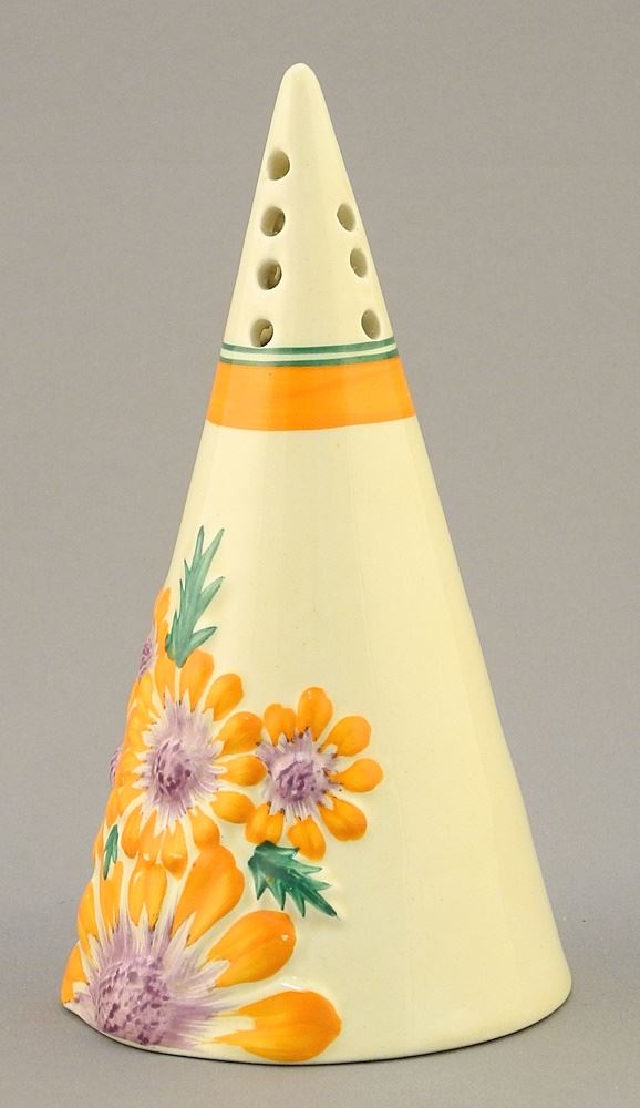 Newport Pottery Clarice Cliff Bizarre "Marguerite" Conical Caster, 5 3/8"H.