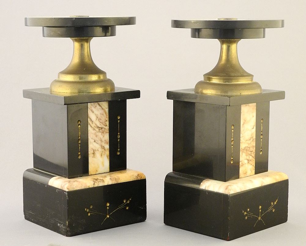 Pair of Black & Brown Marble Garnitures, 3 1/2" x 3" x 7 1/2".