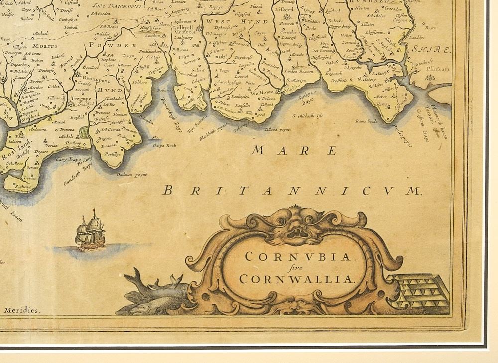 LOT 58 Antique Map: "Cornubiasive Cornwallia", Johannes Blaeu 1659, 15 3/4" x 20" (toning note Estimate: $200 - $300 Sold For: $225 Auction Date: Tuesday, June 11 2024 at 4:00 PM