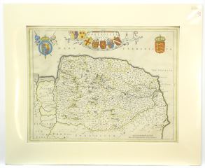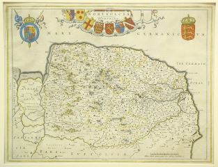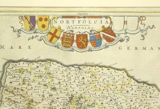 Antique Map: "Nortfolcia Norfolk", J. Blaeu, C.1662, 15 3/8" x 20".