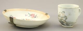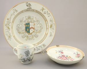 3 Pieces of Chinese Export Porcelain , Armorial Soup Plate / Grisaille Cup / Soup Plate.