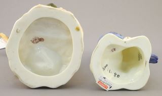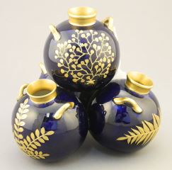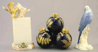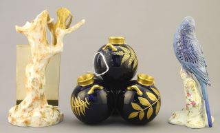 Royal Worcester Gilt Cobalt Posey Vase (5 1/2"h) & 2 Bird Figurines (restored).