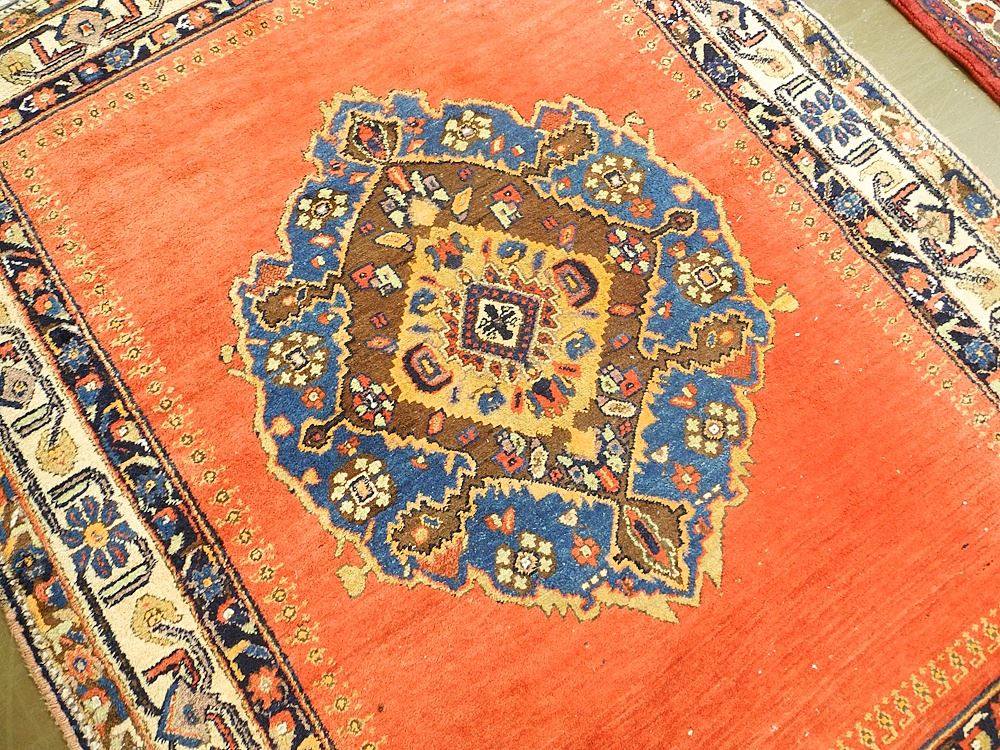 Hand Knotted Persian Wool Carpet, Ruby Field / Blue Medallion Approximately 6'7" x 5'3".