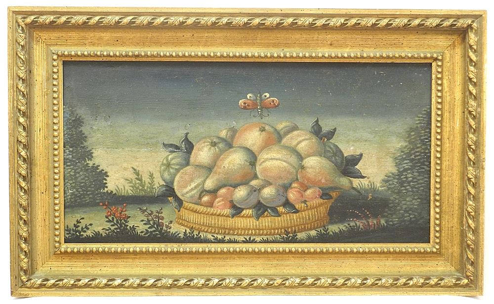 3 Unsigned Naive Oils on Board, 9 3/4" x 19 3/4", "Fruits & Flowers".
