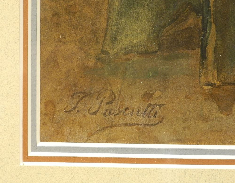 Watercolour signed T/F/J Pascutti, 18 1/2" x 12 1/2", "Girl Feeding a Pigeon".