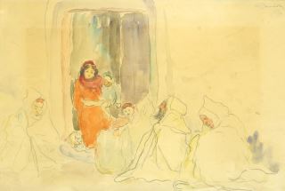LOT 98 Watercolour signed Indistinctly, 6 7/8 x 10", "Algerian Scene". Estimate: $50 - $60 Sold For: $25 Auction Date: Tuesday, August 20 2024 at 4:00 PM