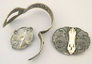 LOT 189 3 Silver Tone Metal Brooches & Bracelet. Estimate: $50 - $60 Sold For: $35 Auction Date: Tuesday, August 20 2024 at 4:00 PM