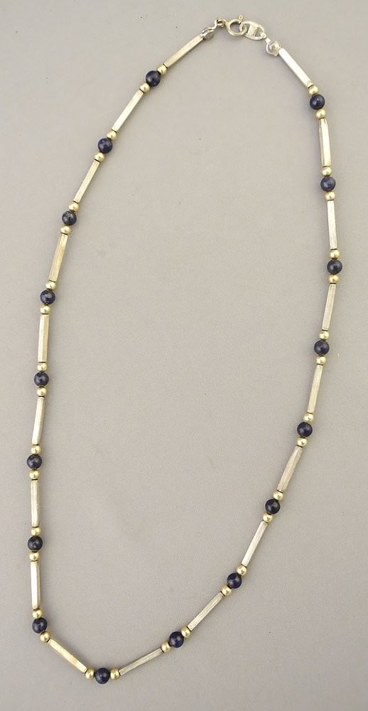 950 (marked) Silver Lapis & Gold- Tone Spacer Necklace, 16 1/2"L, 9.1g