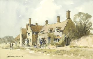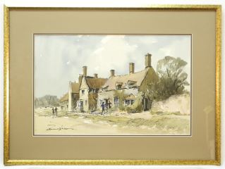 LOT 219 Watercolour signed Wesson, 12 1/2" x 19 1/2", "Cottages at Broadway". Estimate: $100 - $150 Sold For: $50 Auction Date: Tuesday, August 20 2024 at 4:00 PM