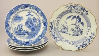 4 Blue & White Chinese Porcelain Plate, 7 7/8 - 8 3/4" Diam., Chips noted