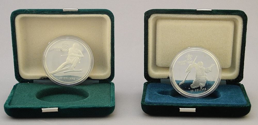 LOT 105 4 Calgary 1988 Olympic 20 Dollar Coins (1 box half missing). Estimate: $125 - $175 Sold For: $140 Auction Date: Tuesday, August 20 2024 at 4:00 PM