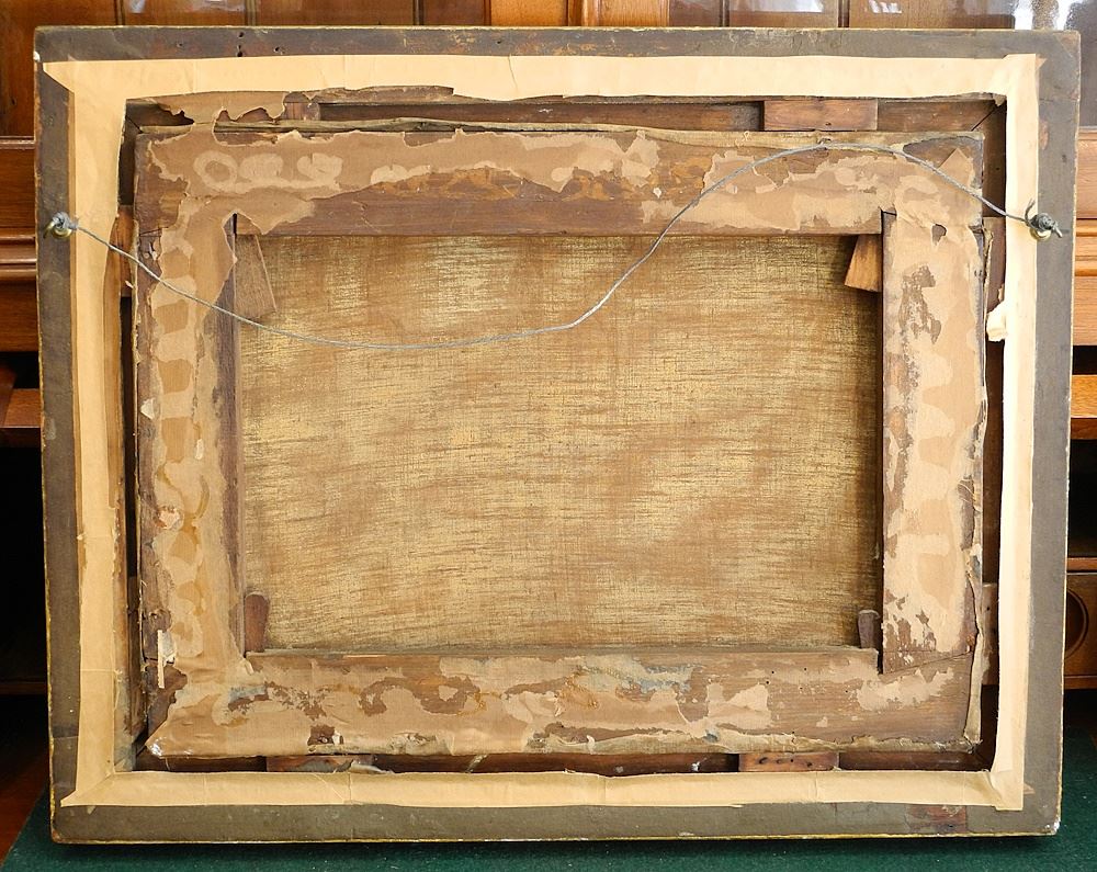 Antique Unsigned Oil on Canvas, 14 1/2" x 19 3/4", "A Dutch Tavern Scene".