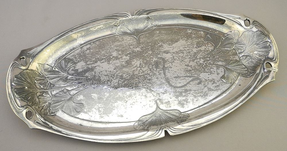 LOT 215 2 Cranberry Glass Tankards & Christofle Gallia Metal Tray, Surface Noted, 14" Wide. Estimate: $80 - $120 Sold For: $70 Auction Date: Tuesday, August 20 2024 at 4:00 PM