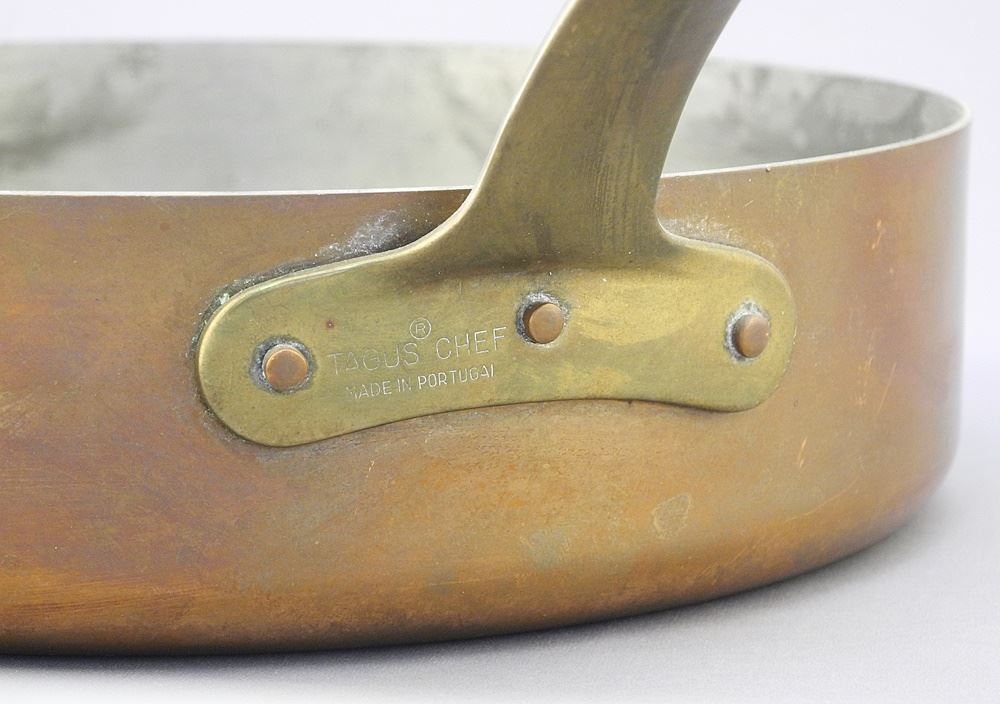 LOT 91 Two "Tagus Chef Portugal" Copper Pot 7 3/8 & 9" Diameter. Estimate: $80 - $100 Sold For: $70 Auction Date: Tuesday, August 20 2024 at 4:00 PM