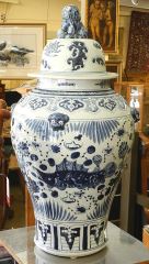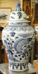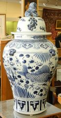 Chinese Blue & White Porcelain Covered Vase, 30"h.