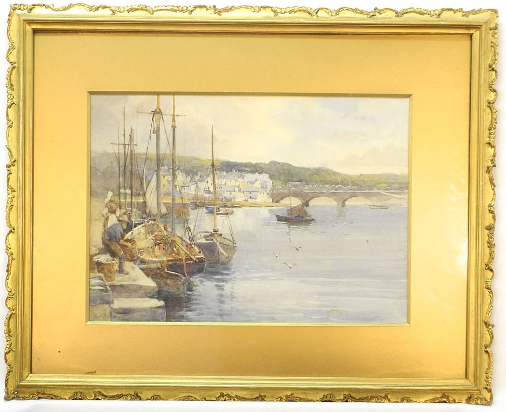 Watercolour signed A. (Arthur) Netherwood, 11" x 15 1/4", "Aberystwyth Old Harbour",
