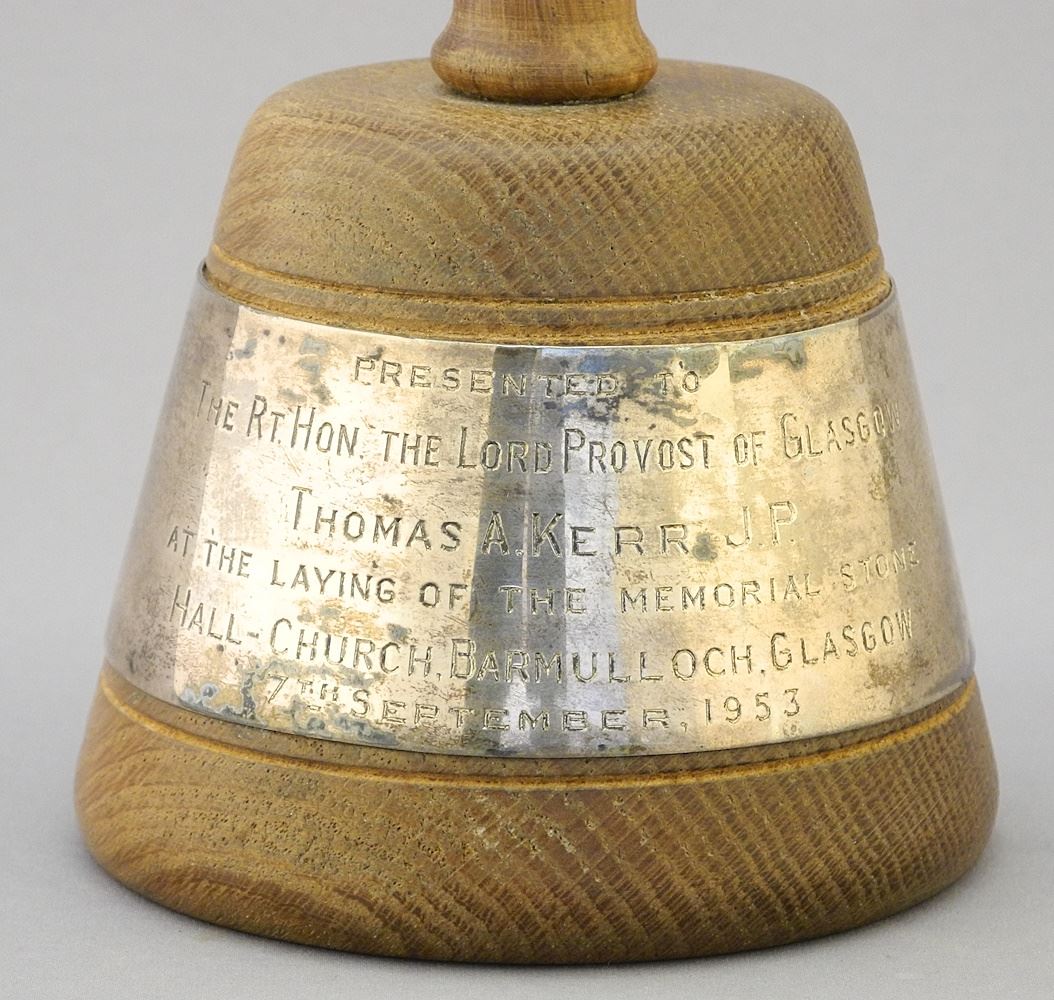 Silver Banded Oak Mallet: 13th C. Roof of the Quire Glasgow Cathedral in Case, 6 3/8"h.