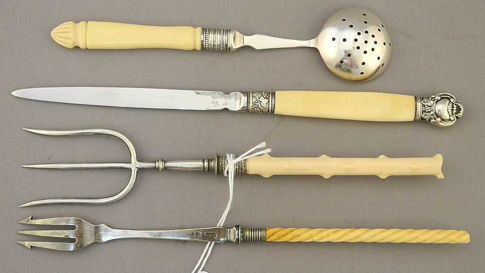 3 Antique Cutlery Items & Letter Opener with Carved Handles, 6 7/8" - 8 3/4"L, NO EXPORT.