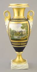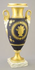 LOT 208 19th C. Porcelain Vase with Swan Handles (lower handles restored), 11"h. Estimate: $50 - $60 Sold For: $25 Auction Date: Tuesday, August 20 2024 at 4:00 PM
