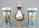 4 China Glass Wares: Pair "Crowne" (7 7/8"h) Vases / Sevres-Style Dish / Enameled Glass Dish.
