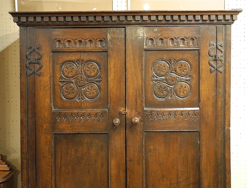 LOT 211 Antique Carved Oak Double Door Cupboard, 69"h. Estimate: $200 - $300 Sold For: $150 Auction Date: Tuesday, November 19 2024 at 4:00 PM