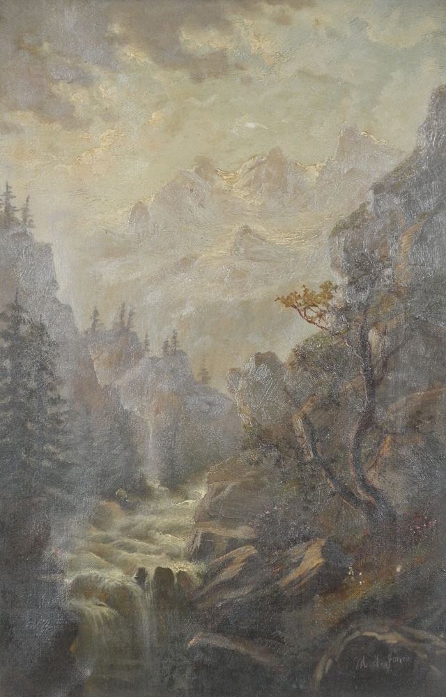 LOT 153 Oil on Canvas signed M. E. Jones, 18" x 12", "River Canyon". Estimate: $80 - $120 Sold For: $70 Auction Date: Tuesday, November 19 2024 at 4:00 PM