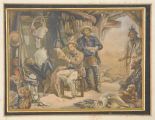 Baxter Print: "Australian Gold" Series, "News From Home" #195, 4 1/4 " x 5 5/8".