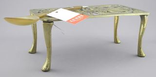 LOT 267 19th C. Fireplace Trivet & Scottish Silver Mounted Horn Spoon. Estimate: $60 - $100 Sold For: $50 Auction Date: Tuesday, November 19 2024 at 4:00 PM