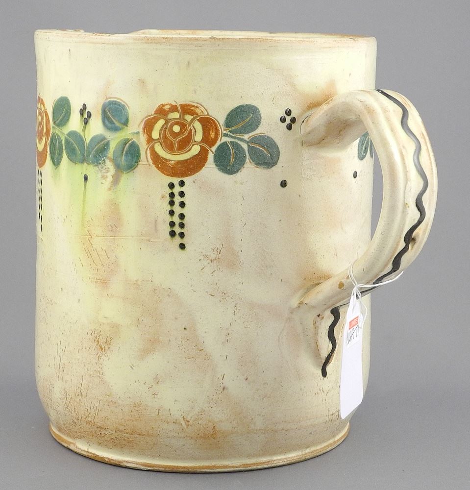 Pottery Jug with Stylized Rose Motif Band, 7 1/4"h.