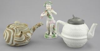 LOT 259 Miniature Teapots & Antique Porcelain Putti. Estimate: $50 - $60 Sold For: $40 Auction Date: Tuesday, November 19 2024 at 4:00 PM