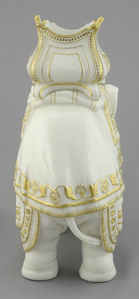 LOT 65 Royal Worcester Porcelain Caparisoned Elephant Tusk, 8 1/2"h, (damaged and cracked). Estimate: $80 - $120 Sold For: $80 Auction Date: Tuesday, November 19 2024 at 4:00 PM