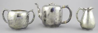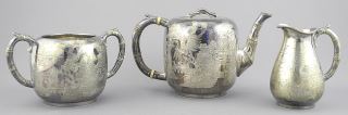 LOT 258 Two Silver Plated Tea Sets: Chinoiserie & Wilkerson, Victoria BC , 6 Pieces. Estimate: $60 - $100 Sold For: $40 Auction Date: Tuesday, November 19 2024 at 4:00 PM