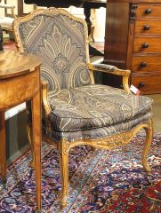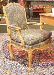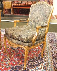 Pair of Louis XV-Style Fruit Wood Bergere Chairs, 37 3/4"h.