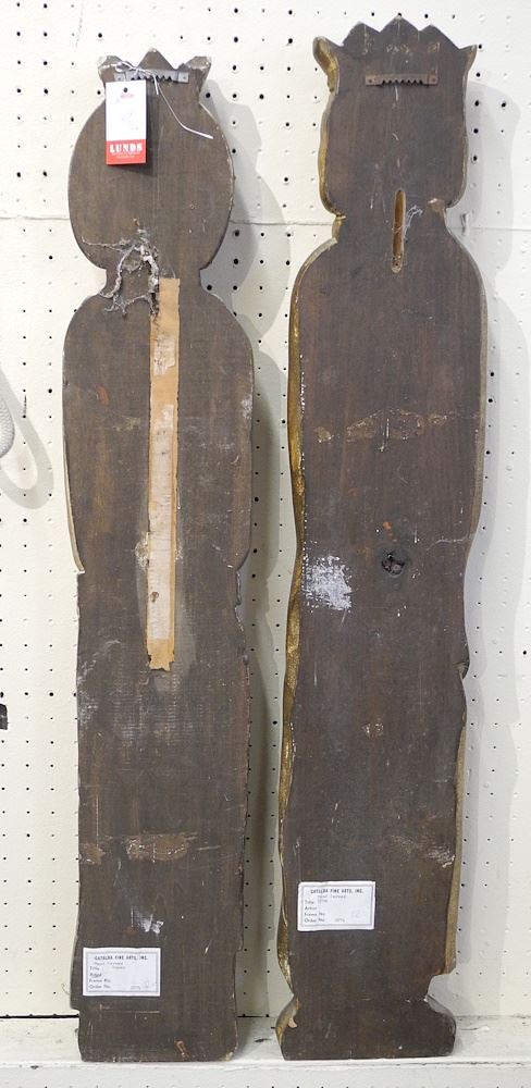 Pair of Catalda Fine Arts Inc. Hand Carved 'King' & 'Queen' Pilasters, Approx. 37" x 7" x 2 3/4".