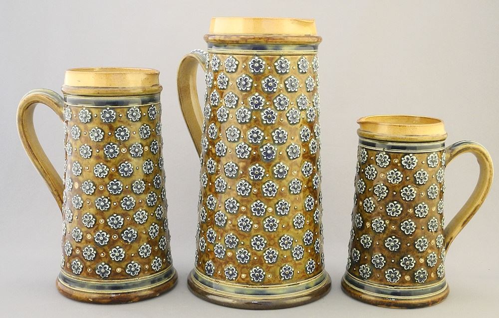 3 Royal Doulton Lambeth Floral Embossed Graduated Pitchers.