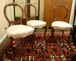 LOT 136 4 Mid 19th C. Cameo Back Mahogany Dining Chairs, 35"h. Estimate: $150 - $250 Sold For: $190 Auction Date: Tuesday, November 19 2024 at 4:00 PM