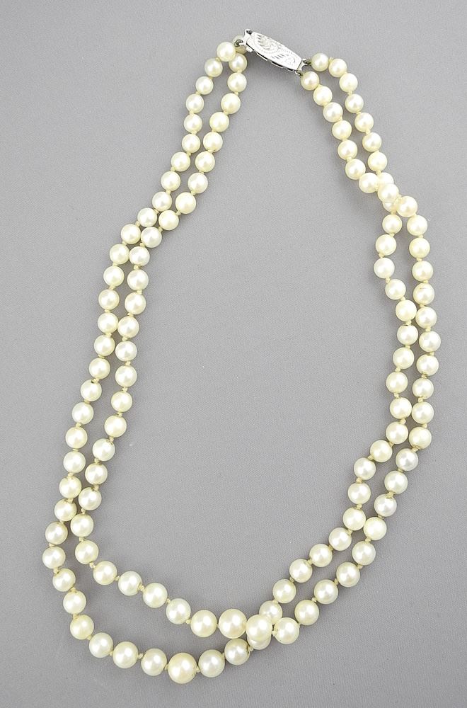 English Cultured Double Pearl Strand Necklace with Sterling (marked) Clasp, 18"L.