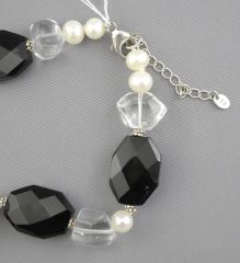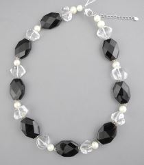 Sterling, Cultured Pearl, Rock Crystal French Jet Necklace, 17 1/2" L.