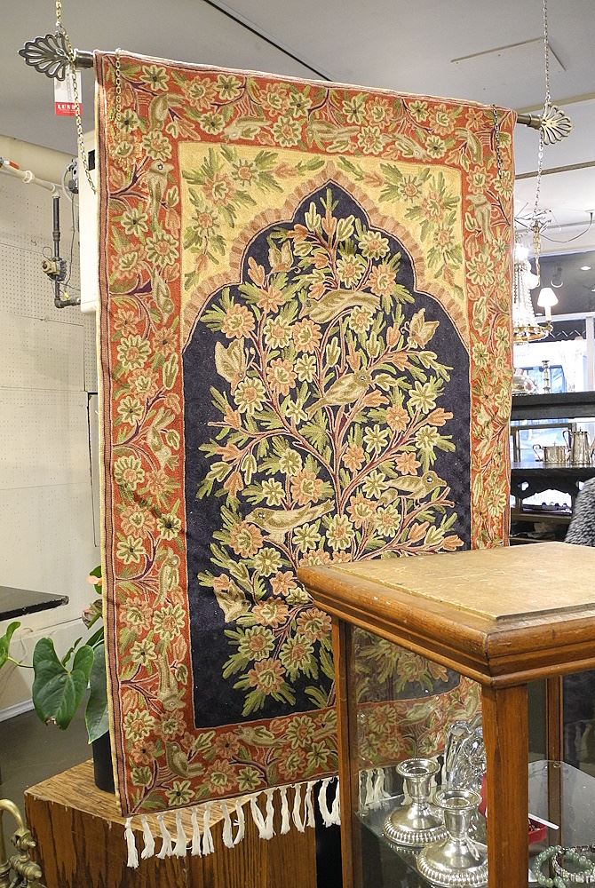 Kashmir Crewel Work Tree of Life Hanging with Mounting Bar, Approx. 46" x 29".