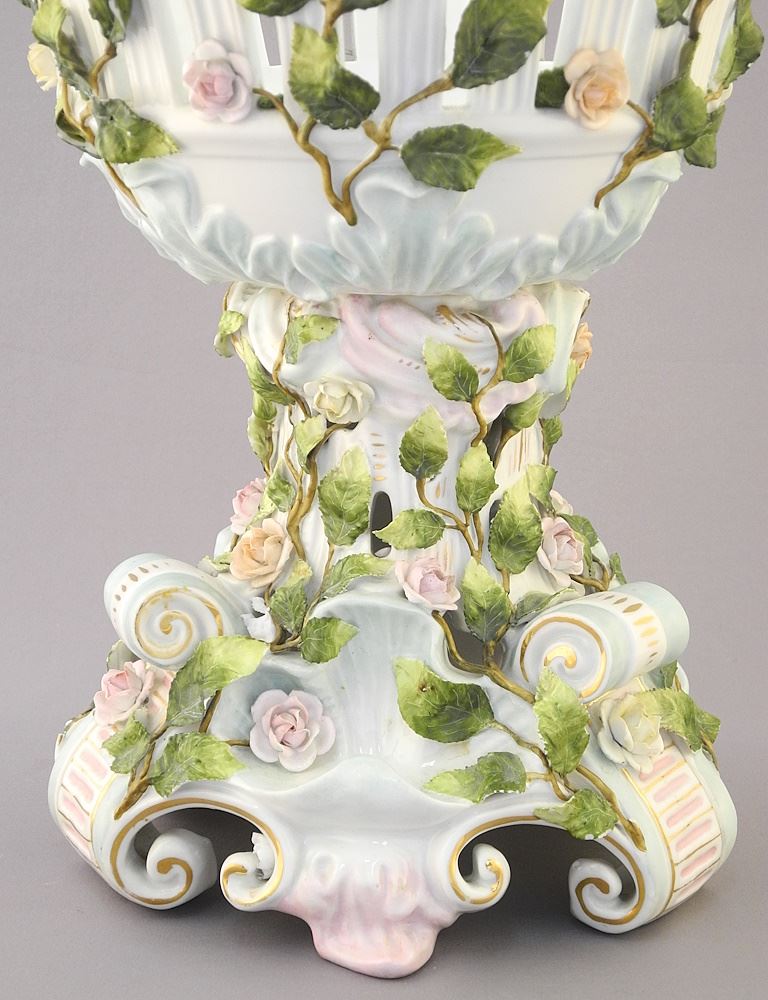 LOT 235 Sitzendorf Porcelain Garniture, 12" - 18"h (as found). Estimate: $200 - $300 Sold For: $150 Auction Date: Tuesday, November 19 2024 at 4:00 PM