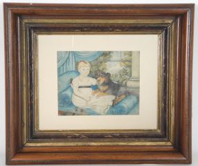 LOT 154 19th C. Lithograph, 5 1/8" x 6 1/2", "Young Child with Dog". Estimate: $50 - $100 Sold For: $80 Auction Date: Tuesday, November 19 2024 at 4:00 PM
