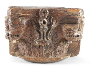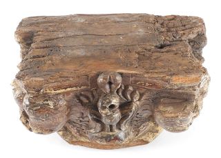 LOT 126 Decorative Carved Wood Capital, 10 3/8" x 15" x 8 1/2" (as found). Estimate: $100 - $150 Sold For: $50 Auction Date: Tuesday, November 19 2024 at 4:00 PM